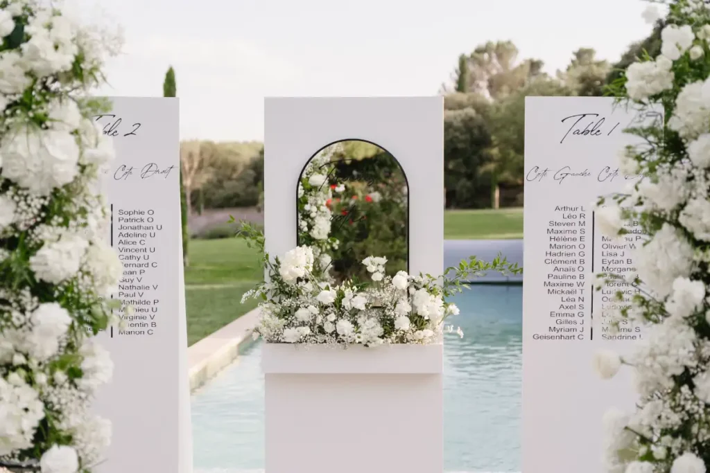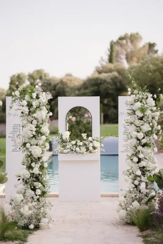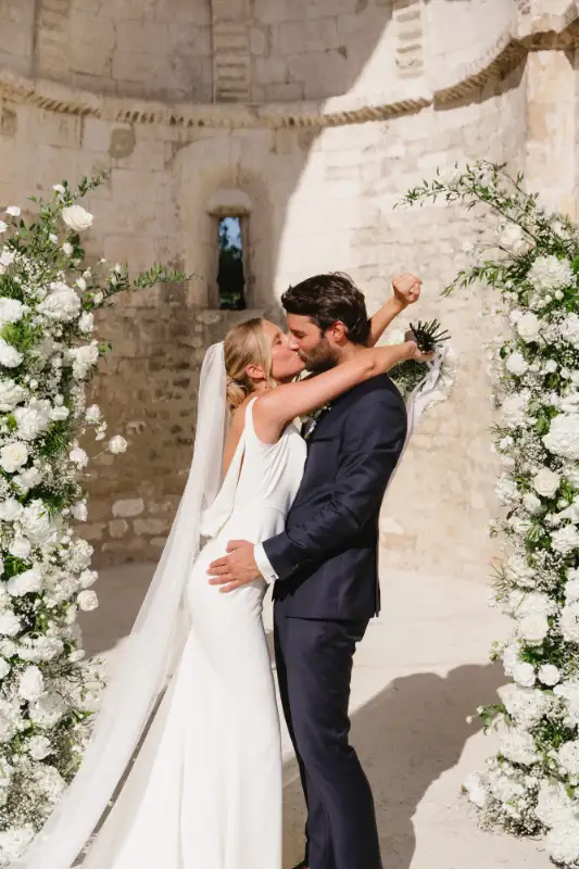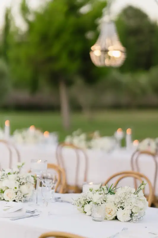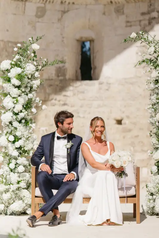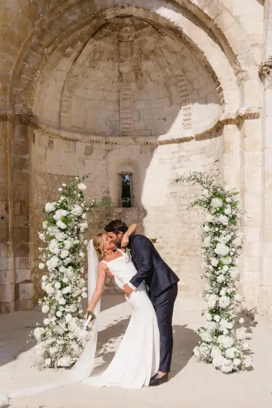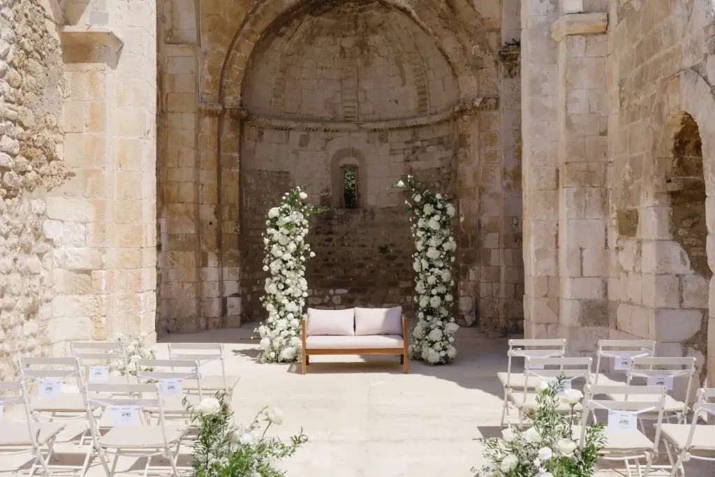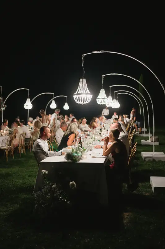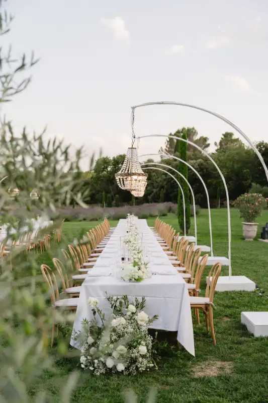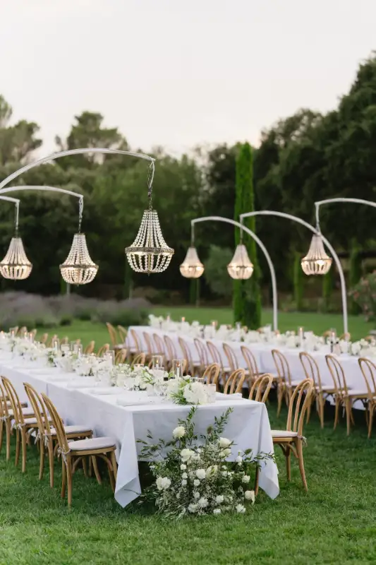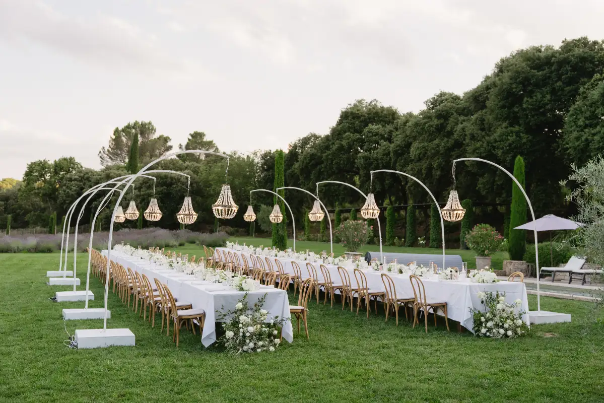 Pauline et Florent said YES in le Mas des Costes in July. Al fresco diner lightened by our Mongolfiere chandelier. And ceremony in the old chapel.